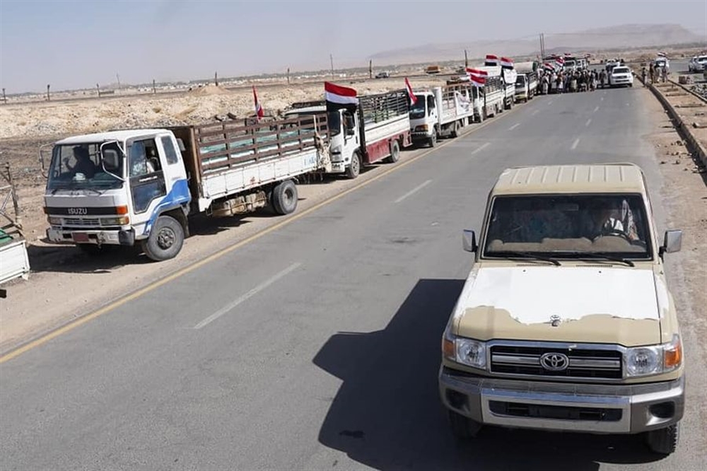 سيرت السلطات الرسمية في محافظة شبوة قافلة غذائية كبيرة إلى جبهات محافظة مأرب التي تصد الغزو الحوثي.