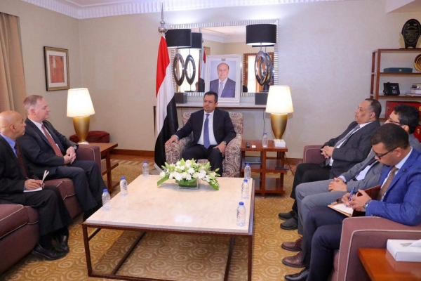 أشاد رئيس الوزراء معين عبدالملك، اليوم الثلاثاء، بالدعم الأمريكي الثابت للحكومة اليمنية، ومواقفها الواضحة المساند لوحدة وسلامة أراضي اليمن، وكذا مواقفها الحازمة...