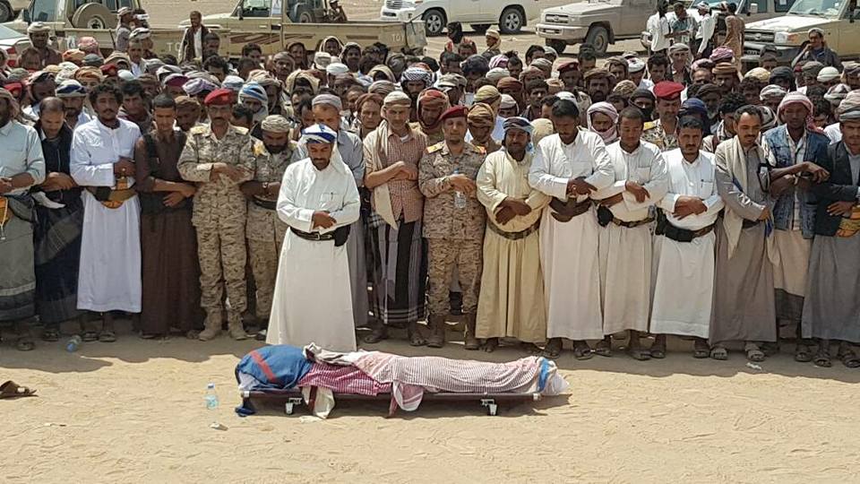 شيع المئات يتقدمهم قائد أركان حرب المنطقة العسكرية السادسة، العميد الركن منصور ثوابه، وقيادات عسكرية أخرى في مأرب، جثمان العميد تركي المهشمي، قائد اللواء 147 الذي...