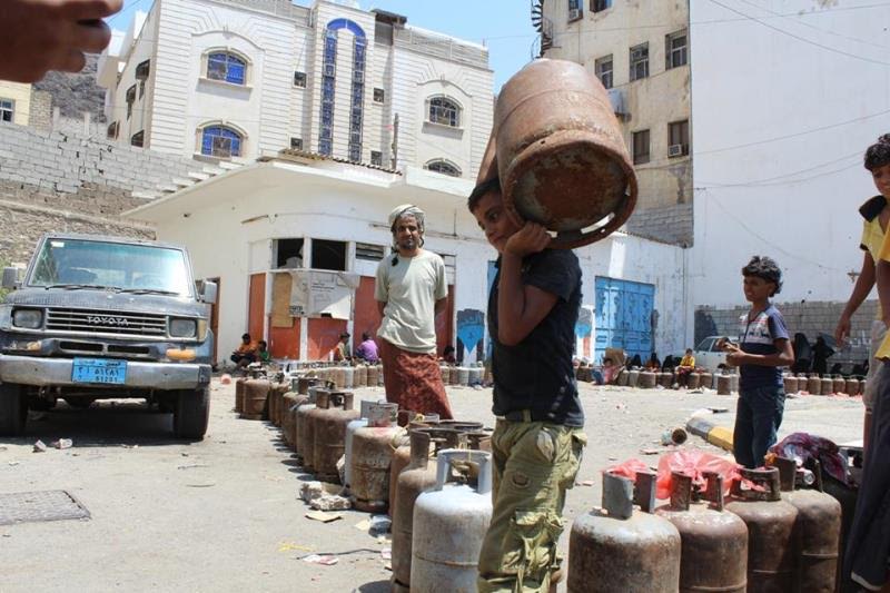 تتزاحم المئات من أسطوانات ‘‘الغاز المنزلي’’ بشكل لولبي إلى جانب أصحابها من نساء وأطفال من خلال طوابير طويلة على مدى خمسة أيام ماضية على قارعة شارع أروى بمدينة عدن