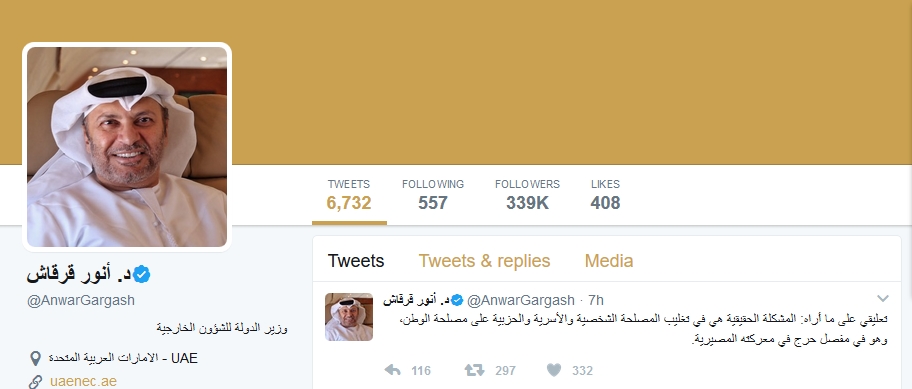 كشف وزير الشؤون الخارجية الإماراتي أنور قرقاش عن موقف بلاده من القرارات الأخيرة للرئيس اليمني عبدربه منصور هادي، التي أطاحت بحلفائهم في مدينة عدن جنوبي البلاد.