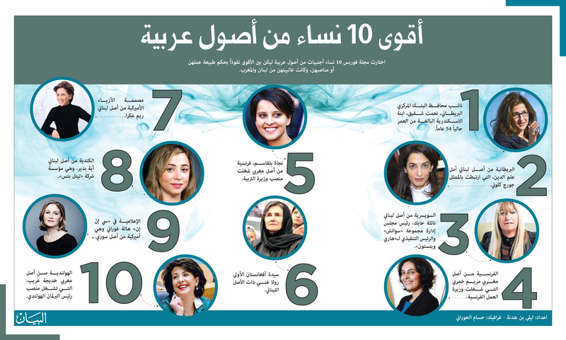 اختارت مجلة فوربس 10 نساء أجنبيات من أصول عربية ليكن بين الأقوى نفوذاً بحكم طبيعة عملهن أو مناصبهن،