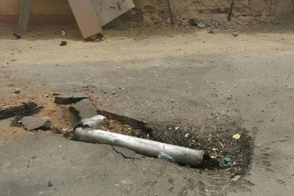 آثار القصف الذي استهدف فندقا في أرحب شمال صنعاء