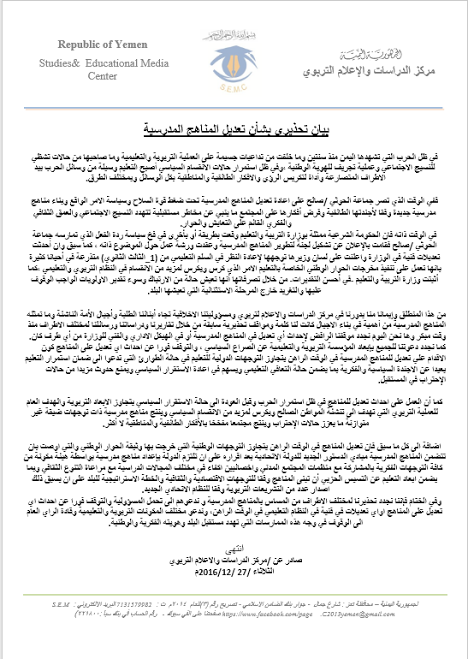 مركز الإعلام التربوي يحذر من أي تعديل في المناهج الدراسية أو في النظام التعليمي في الوقت الراهن
