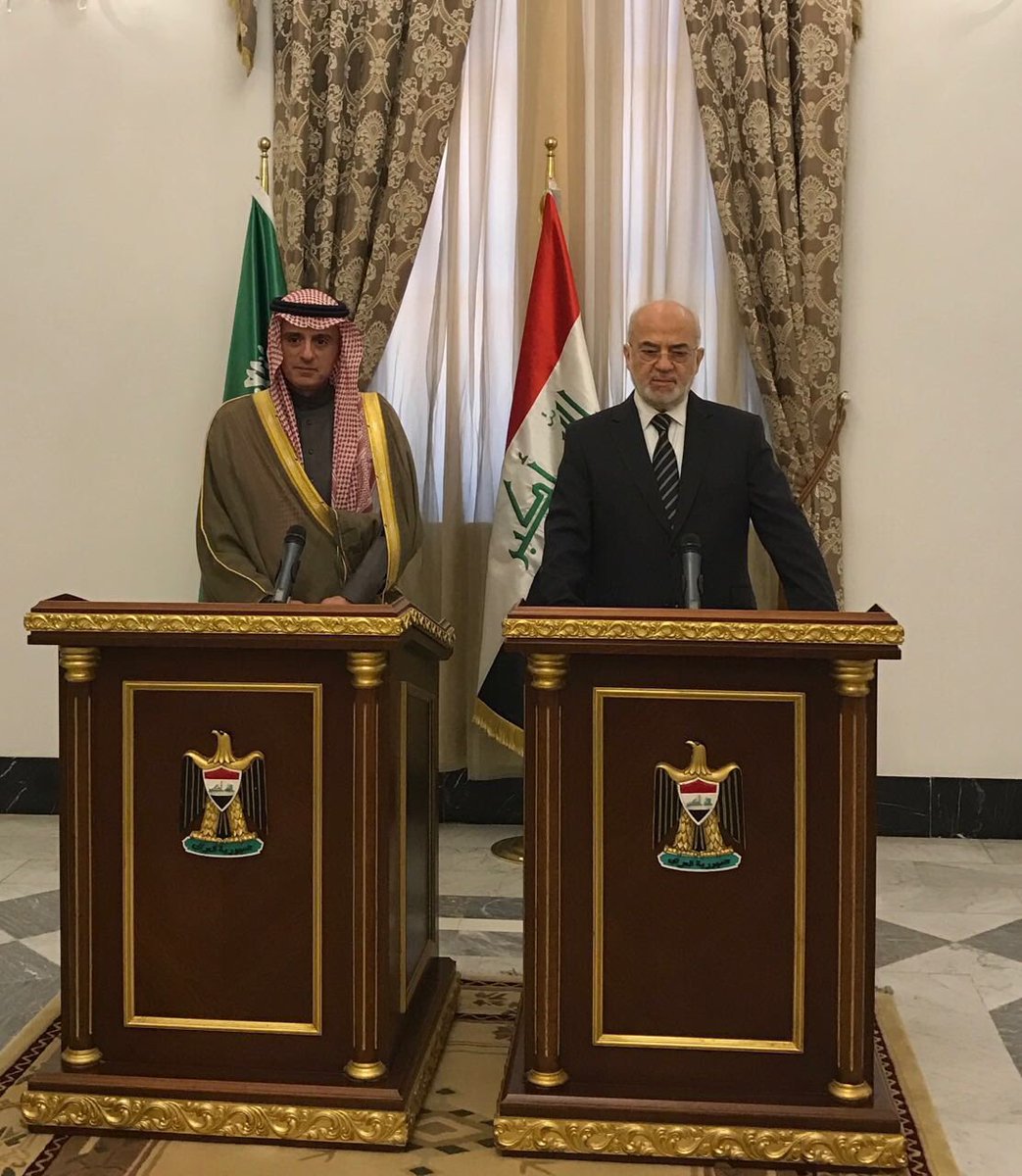 قال وزير الخارجية السعودي، عادل الجبير، اليوم السبت، من بغداد إن السعودية والعراق يواجهان آفة الإرهاب، وإن المملكة تقف على مسافة واحدة من جميع العراقيين.